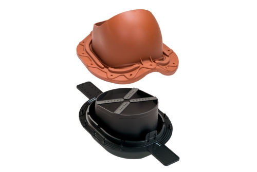 MUOTOKATE 2K проходной элемент для металлочерепицы с профилем Monterrey (ширина волны ≈ 183,3 мм, длина профиля min 350 мм, высота профиля ≈ 39 мм). В комплект входит двухкомпонентный 2K-уплотнитель гидрозатвора, гарантирующий полную герметичность прохода через гидрозащитную пленку.