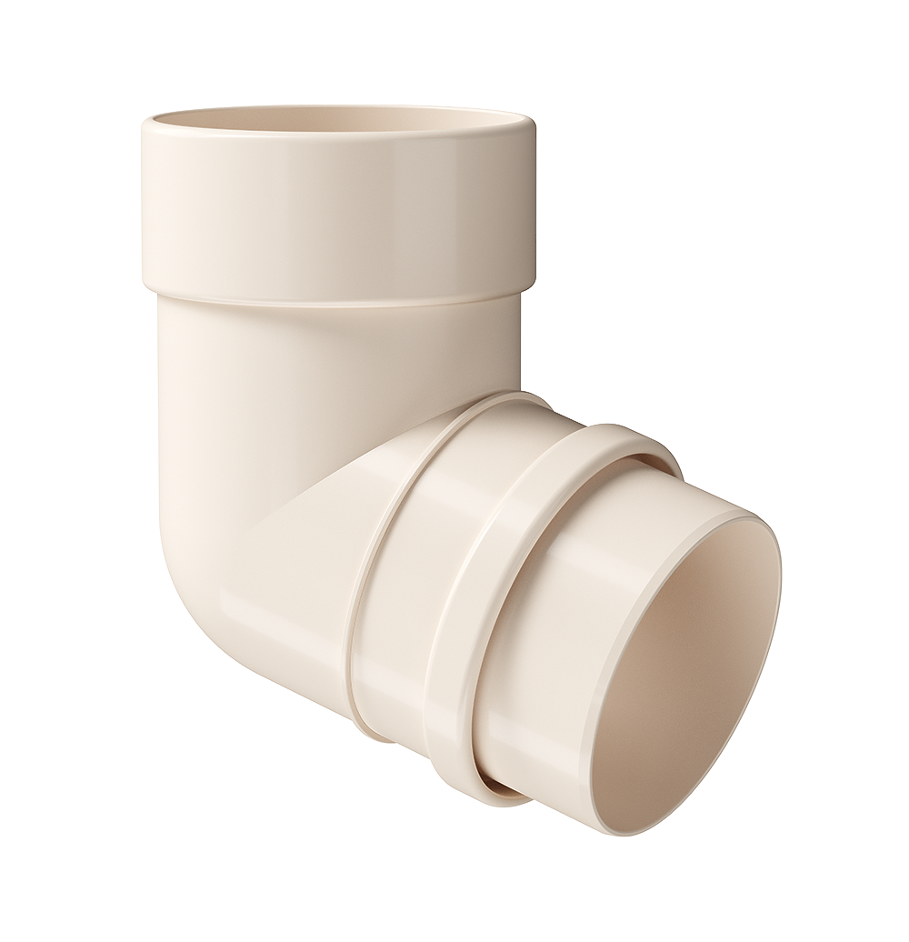 Колено вставляется в воронку желоба без лишних креплений. В колено вставляется отрезок трубы, учитывающий нужное расстояние до фасада дома. В отрезок трубы вставляется нижнее колено водосточной трубы, оно крепится хомутом к стене здания и обеспечивает вертикаль водослива.