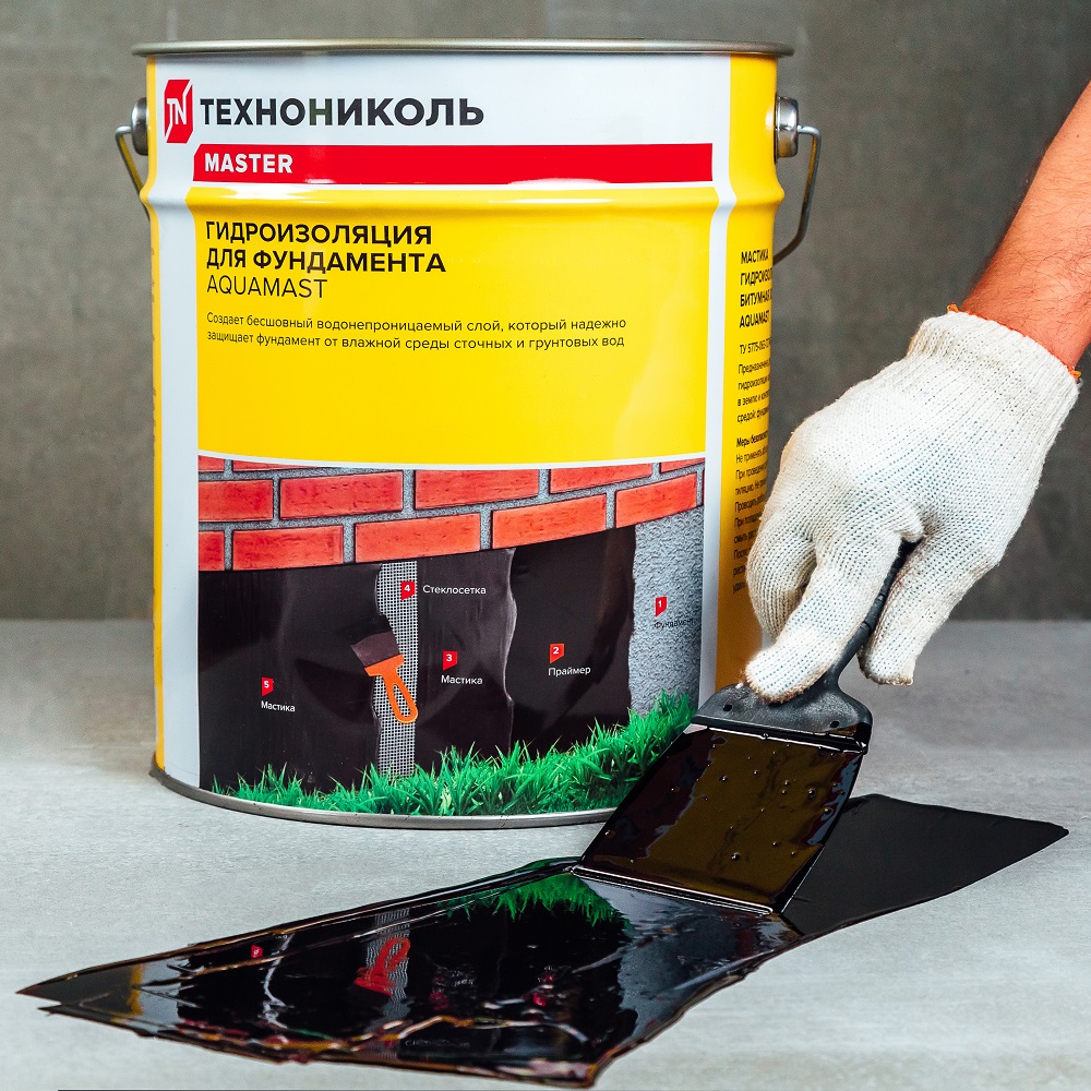 Мастика для фундамента Технониколь AquaMast — это инновационный продукт, который обеспечивает надёжную защиту фундамента от воздействия влаги. Она создаёт водонепроницаемый слой, который не допускает проникновения сточных и грунтовых вод.