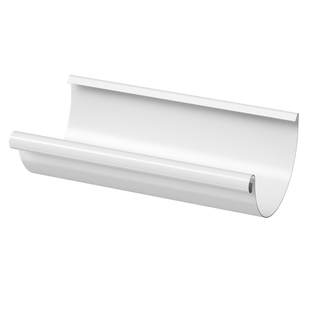 Задача желоба — направлять, стекающую в него, воду с крыши дальше по водосточной системе в дренаж или на землю. Водосточный желоб полукруглый имеет ширину 125 мм и длину 3 метра.